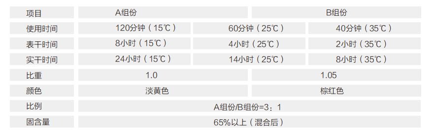 混合:按比例將A、B組份倒入攪拌桶后攪拌均勻(電動(dòng):攪拌時(shí)間不低于1min,手動(dòng):攪拌時(shí)間不低于2min,注意上下液面間的層間混合)。
