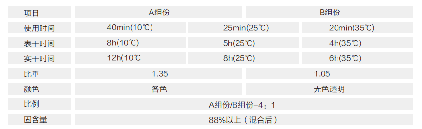 用量膜厚:0.12-0.15kg/m2,淺色系可適當(dāng)增加涂布次數(shù)。